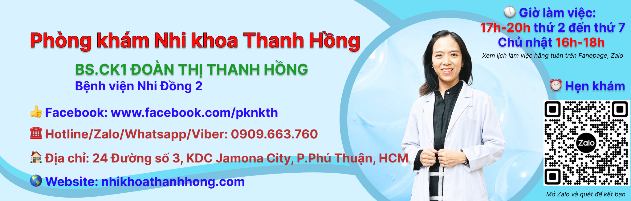 Công tác tại Bệnh viện Nhi đồng 2 từ năm 2010 đến nay, nhận thức được tầm quan trọng trong việc chăm sóc sức khoẻ cho con trẻ, nhằm giải quyết những lo âu và trăn trở của các bậc phụ huynh trong vấn đề chăm sóc và điều trị các bệnh lý liên quan, Phòng khám nhi khoa Thanh Hồng được thành lập với hy vọng là một địa chỉ đáng tin cậy và uy tín cho ba mẹ.